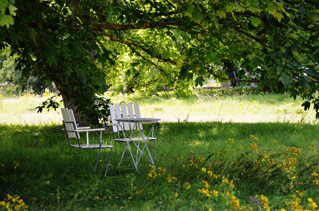 Jag ser dem ur mitt fönster. Himlen är blek,
